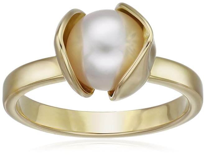 House of Eleonore "Paradise" 18k Yellow Gold Orchid Plain Pearl Ring, Size 7